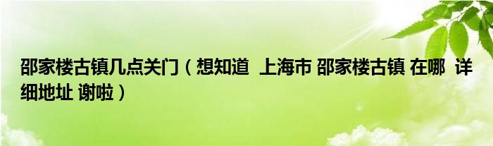 邵家楼古镇几点关门(想知道 上海市 邵家楼古镇 在哪 详细地址 谢啦)