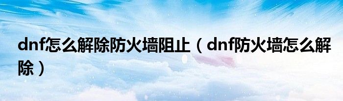 关于dnf怎么解除防火墙阻止,dnf防火墙怎么解除这个很多人还不知道,今天菲菲来为大家解答以上的问题,现在让我们一起来看看吧!