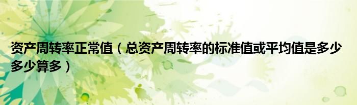 关于资产周转率正常值,总资产周转率的标准值或平均值是多少 多少算多这个很多人还不知道,今天菲菲来为大家解答以上的问题,现在让我们一起来看看吧!