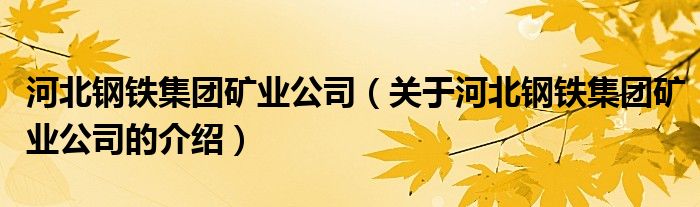 大家好,今天小乐来为大家解答以上的问题。河北钢铁集团矿业公司,关于河北钢铁集团矿业公司的介绍很多人还不知道,现在让我们一起来看看吧!