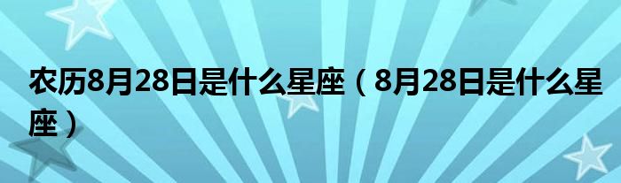 关于农历8月28日是什么星座,8月28日是什么星座这个很多人还不知道,今天菲菲来为大家解答以上的问题,现在让我们一起来看看吧!