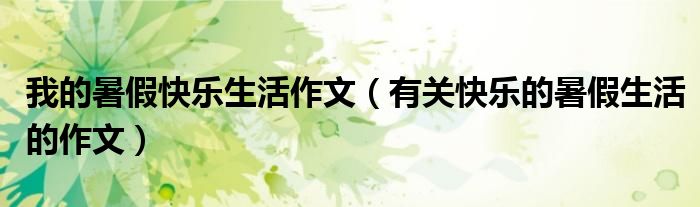 关于我的暑假快乐生活作文,有关快乐的暑假生活的作文这个很多人还不知道,今天菲菲来为大家解答以上的问题,现在让我们一起来看看吧!