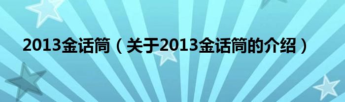 大家好,今天小乐来为大家解答以上的问题。2013金话筒,关于2013金话筒的介绍很多人还不知道,现在让我们一起来看看吧!