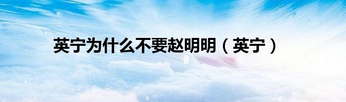 关于英宁为什么不要赵明明,英宁这个很多人还不知道,今天菲菲来为大家解答以上的问题,现在让我们一起来看看吧!