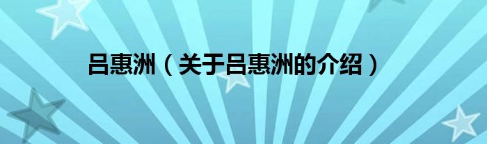 大家好,今天小乐来为大家解答以上的问题。吕惠洲,关于吕惠洲的介绍很多人还不知道,现在让我们一起来看看吧!