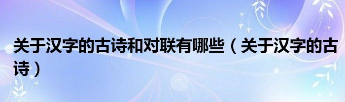 关于关于汉字的古诗和对联有哪些,关于汉字的古诗这个很多人还不知道,今天菲菲来为大家解答以上的问题,现在让我们一起来看看吧!