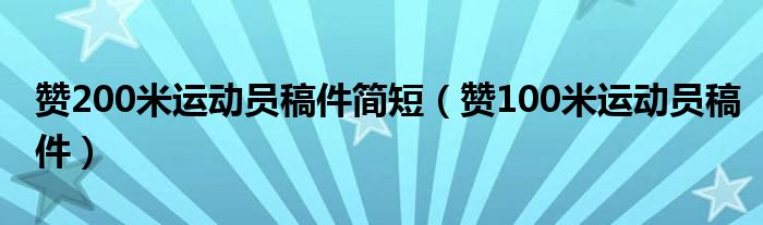关于赞200米运动员稿件简短,赞100米运动员稿件这个很多人还不知道,今天菲菲来为大家解答以上的问题,现在让我们一起来看看吧!