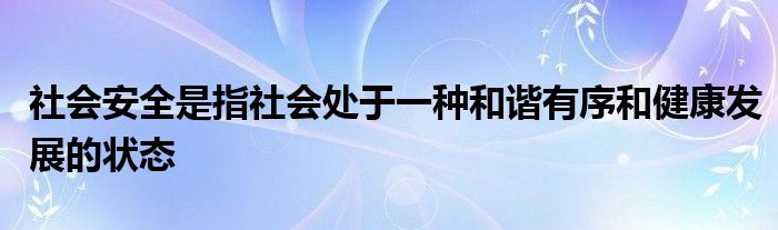 关于社会安全是指社会处于一种和谐有序和健康发展的状态这个很多人还不知道,今天菲菲来为大家解答以上的问题,现在让我们一起来看看吧!