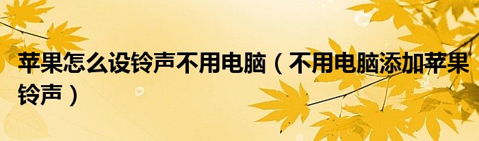 大家好,小晋来为大家解答以下问题,关于苹果怎么设铃声不用电脑,不用电脑添加苹果铃声很多人还不知道,今天让我们一起来看看吧!