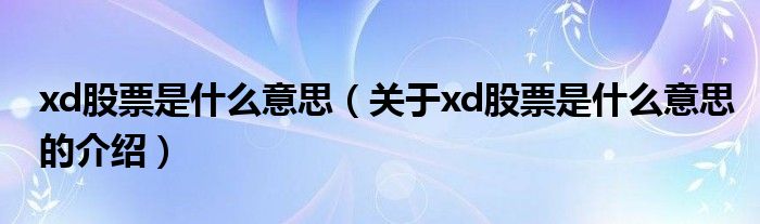 大家好,小都来为大家解答以上的问题。xd股票是什么意思,关于xd股票是什么意思的介绍很多人还不知道,现在让我们一起来看看吧!