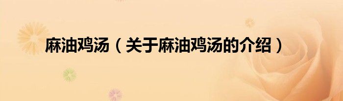 麻油鸡汤(关于麻油鸡汤的介绍)