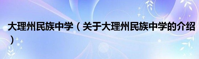 大家好,小都来为大家解答以上的问题。大理州民族中学,关于大理州民族中学的介绍很多人还不知道,现在让我们一起来看看吧!