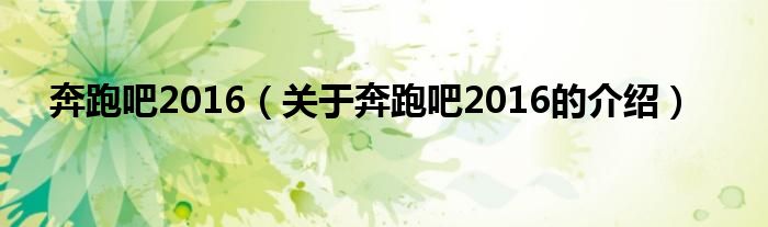 奔跑吧2016(关于奔跑吧2016的介绍)