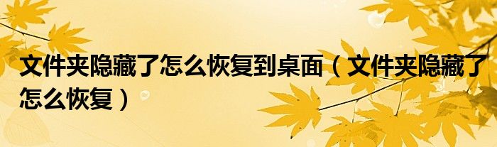 文件夹隐藏了怎么恢复到桌面(文件夹隐藏了怎么恢复)