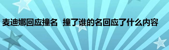 大家好.我是互联百科的羽儿,现在为大家解决以上麦迪娜回应撞名 撞了谁的名回应了什么内容的问题.