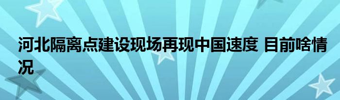 大家好.我是互联百科的羽儿,现在为大家解决以上河北隔离点建设现场再现中国速度 目前啥情况的问题.