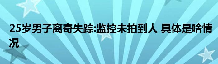 大家好.我是互联百科的羽儿,现在为大家解决以上25岁男子离奇失踪:监控未拍到人 具体是啥情况的问题.