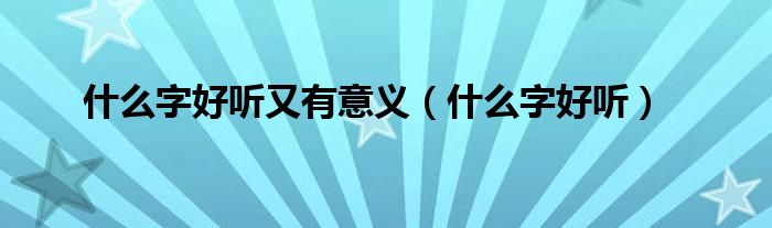 关于什么字好听又有意义,什么字好听这个很多人还不知道,今天菲菲来为大家解答以上的问题,现在让我们一起来看看吧!