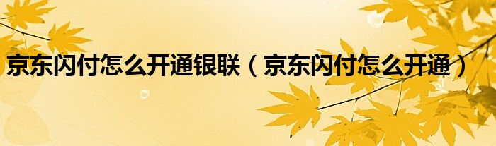 关于京东闪付怎么开通银联,京东闪付怎么开通这个很多人还不知道,今天菲菲来为大家解答以上的问题,现在让我们一起来看看吧!