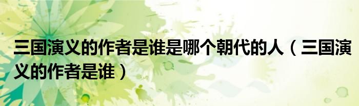 关于三国演义的作者是谁是哪个朝代的人,三国演义的作者是谁这个很多人还不知道,今天菲菲来为大家解答以上的问题,现在让我们一起来看看吧!