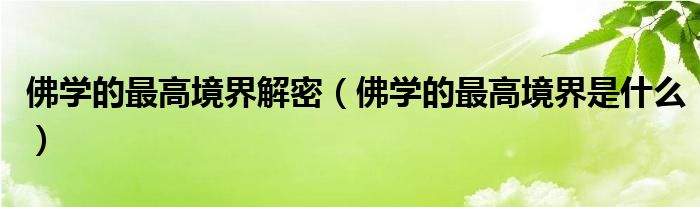 大家好,小晋来为大家解答以下问题,关于佛学的最高境界解密,佛学的最高境界是什么很多人还不知道,今天让我们一起来看看吧!