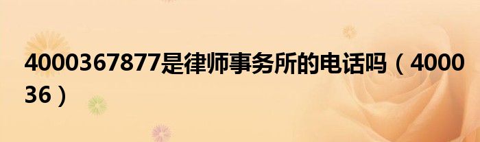 关于4000367877是律师事务所的电话吗,400036这个很多人还不知道,今天菲菲来为大家解答以上的问题,现在让我们一起来看看吧!