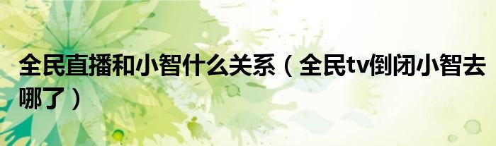 全民直播和小智什么关系(全民tv倒闭小智去哪了)