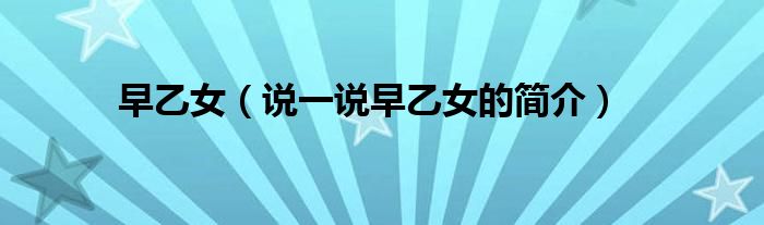 早乙女(说一说早乙女的简介)