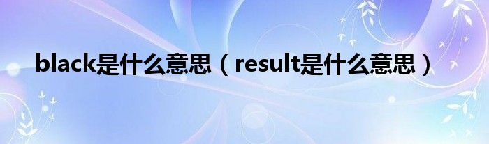 关于black是什么意思,result是什么意思这个很多人还不知道,今天菲菲来为大家解答以上的问题,现在让我们一起来看看吧!