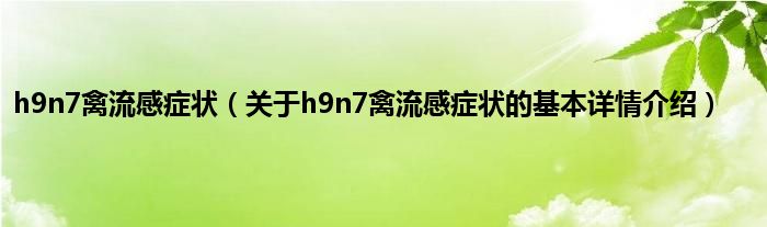 本文关于h9n7禽流感症状的基本详情介绍就讲解完毕,希望对大家有所帮助。