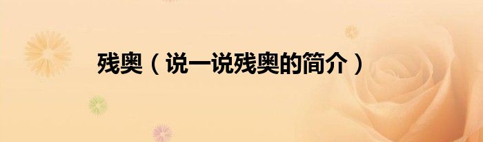 夏弥来为大家解答以下的问题,残奥,说一说残奥的简介,现在让我们一起来看看吧!