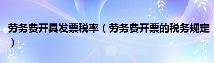 关于劳务费开具发票税率,劳务费开票的税务规定这个很多人还不知道,今天菲菲来为大家解答以上的问题,现在让我们一起来看看吧!