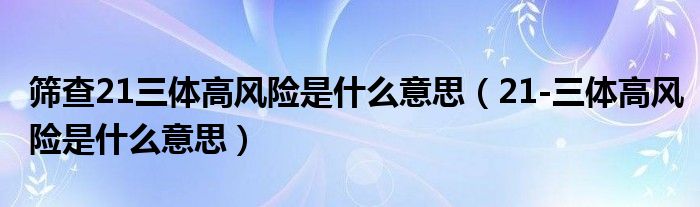 1、 21-三体的高风险是指胎儿有21-三体综合征的可能性。正常人群有23对染色体,包括46条染色体,每条染色体都是配对的。如果多了一条21号染色体,21号上的两条染色体就会变成21号上的三条染色体。