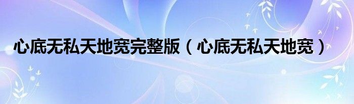 关于心底无私天地宽完整版,心底无私天地宽这个很多人还不知道,今天菲菲来为大家解答以上的问题,现在让我们一起来看看吧!