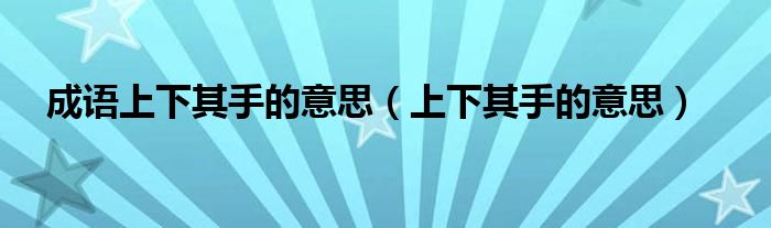 关于成语上下其手的意思,上下其手的意思这个很多人还不知道,今天菲菲来为大家解答以上的问题,现在让我们一起来看看吧!