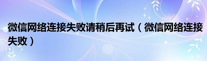 今天小饼为大家解答以下问题,关于微信网络连接失败请稍后再试,微信网络连接失败很多人还不知道,现在让我们一起来看看吧!