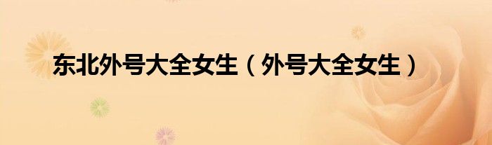 最佳答案大家好,我是小科,我来为大家解答以上问题。东北外号大全女生,外号大全女生很多人还不知道,现在让我们一起来看看吧!1、一一,谐音又简单2、咩咩,因为杨咩咩……,还有羊羊,懒羊羊3、文静的叫小乖,安安,调皮闹腾的叫皮皮,小翻,闹闹,丢丢4、性子慢,磨磨蹭蹭,墨迹的的可以叫墨墨,阿墨,...
