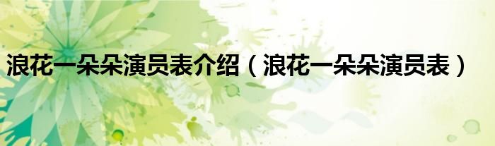 浪花一朵朵演员表介绍(浪花一朵朵演员表)