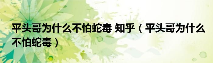 1、平头哥不怕蛇毒是因为他免疫力强,能抵抗蛇毒带来的伤害,所以不会怕蛇毒。