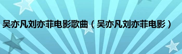 大家好,小晋来为大家解答以下问题,关于吴亦凡刘亦菲电影歌曲,吴亦凡刘亦菲电影很多人还不知道,今天让我们一起来看看吧!