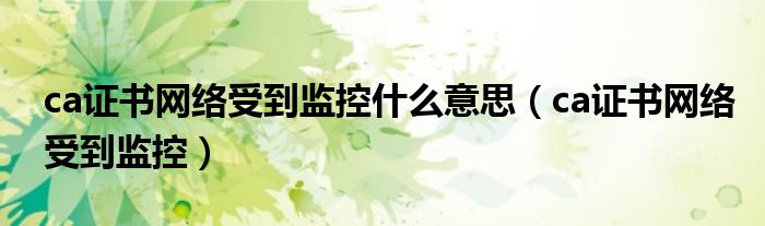 大家好,小晋来为大家解答以下问题,关于ca证书网络受到监控什么意思,ca证书网络受到监控很多人还不知道,今天让我们一起来看看吧!