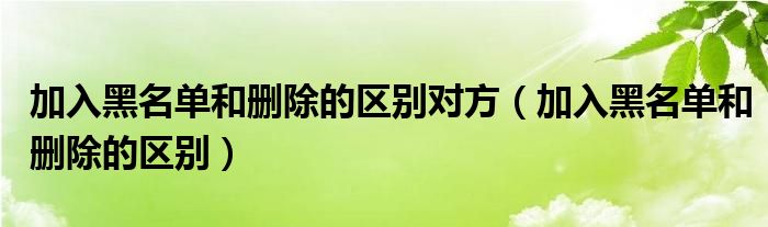 大家好,小晋来为大家解答以下问题,关于加入黑名单和删除的区别对方,加入黑名单和删除的区别很多人还不知道,今天让我们一起来看看吧!