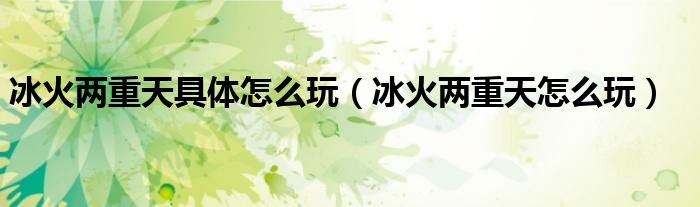 大家好,来宝来为大家解答以下问题,冰火两重天具体怎么玩,冰火两重天怎么玩很多人还不知道,今天让我们一起来看看吧!