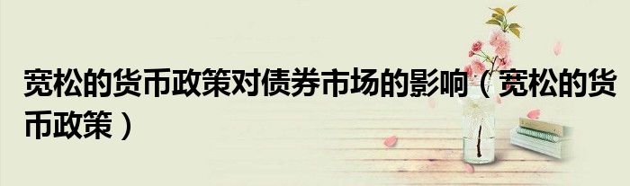 关于宽松的货币政策对债券市场的影响,宽松的货币政策这个很多人还不知道,今天菲菲来为大家解答以上的问题,现在让我们一起来看看吧!