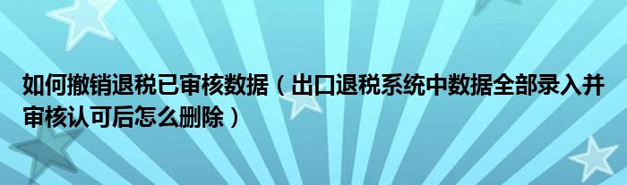 关于如何撤销退税已审核数据,出口退税系统中数据全部录入并审核认可后怎么删除这个很多人还不知道,今天菲菲来为大家解答以上的问题,现在让我们一起来看看吧!