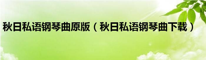 关于秋日私语钢琴曲原版,秋日私语钢琴曲下载这个很多人还不知道,今天菲菲来为大家解答以上的问题,现在让我们一起来看看吧!