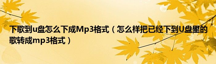 下歌到u盘怎么下成Mp3格式(怎么样把已经下到U盘里的歌转成mp3格式)