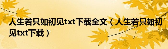 关于人生若只如初见txt下载全文,人生若只如初见txt下载这个很多人还不知道,今天菲菲来为大家解答以上的问题,现在让我们一起来看看吧!