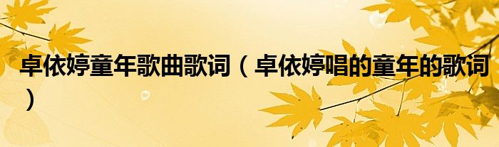 关于卓依婷童年歌曲歌词,卓依婷唱的童年的歌词这个很多人还不知道,今天菲菲来为大家解答以上的问题,现在让我们一起来看看吧!