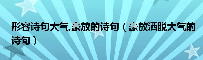 关于形容诗句大气,豪放的诗句,豪放洒脱大气的诗句这个很多人还不知道,今天菲菲来为大家解答以上的问题,现在让我们一起来看看吧!
